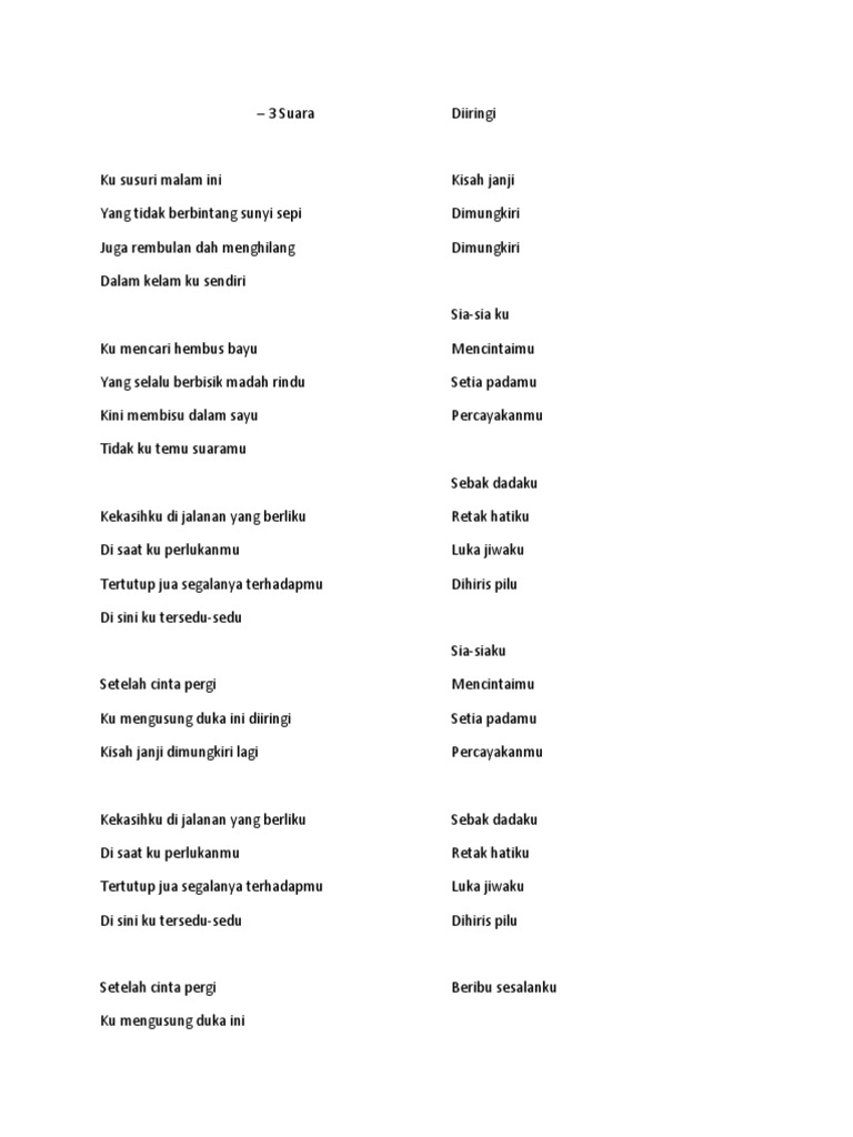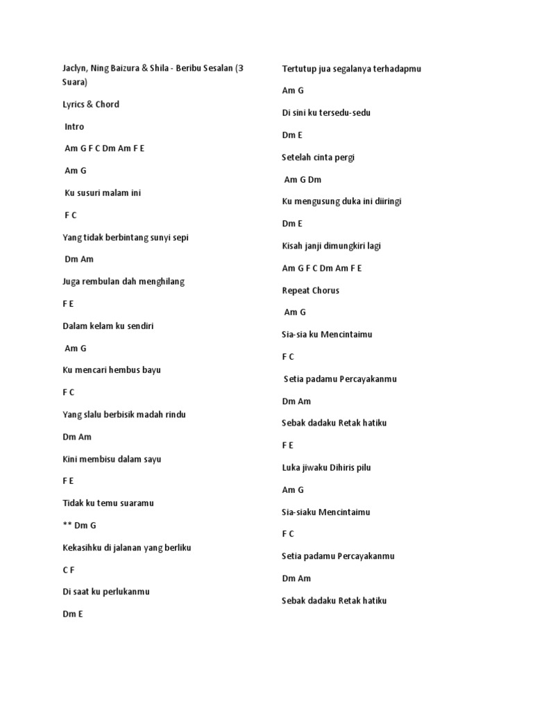 Lirik Lagu Paling Best Lirik Lagu Beribu Sesalan Jaclyn Ning Baizura Shira Hamzah